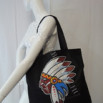 Anyagból készült,40 cm x 33 cm es a füle pedig 25 cm magasságú, indián fej formával díszített táska zipzárral.