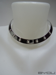 Antiallergén fémből készült,lyukacsokkla díszített merev bizsu nyaklánc.