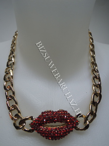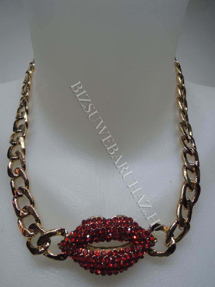 Antiallergén fém bevonattal készült,strasszköves száj formával díszített,nagy láncszemes díszítésű,állítható méretű nyaklánc.