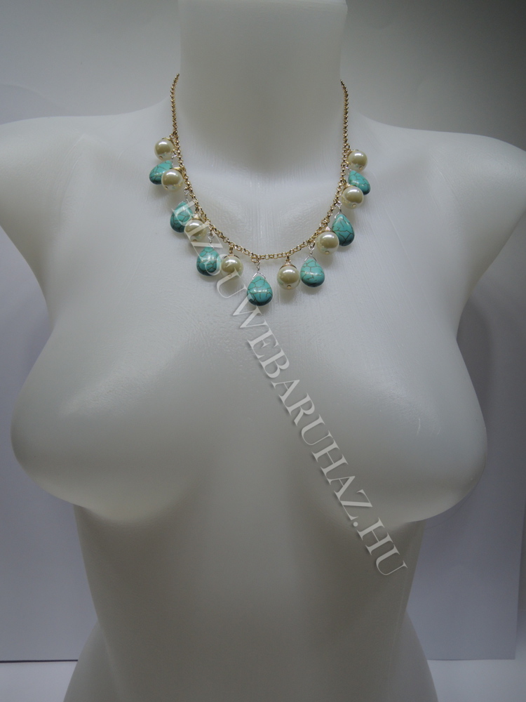 Antiallergén fém bevonattal készült,csiszolt köves és teklagyöngyös,állítható méretű nyaklánc.