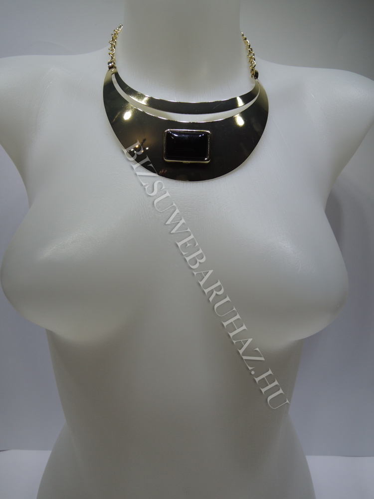 Antiallergén fém bevonattal készült, részben merev,állítható méretű,fekete kővel díszített nyaklánc.