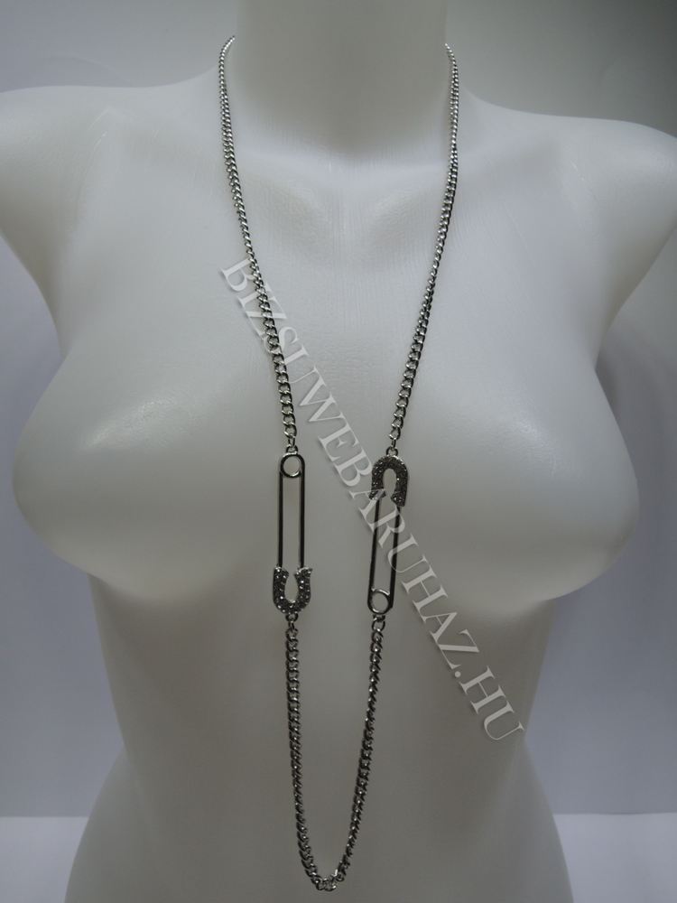 Antiallergén fém bevonattal készült,strasszköves ziherejsz tű formájú ,állítható méretű hosszú nyaklánc.