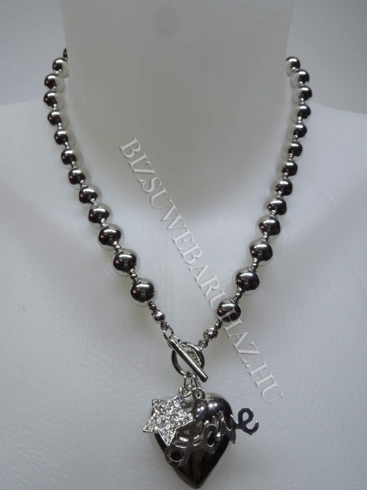 Antiallergén fém bevonattal készült,elől kapcsos,LOVE felirattal,csillag és szív medállal díszített nyaklánc.