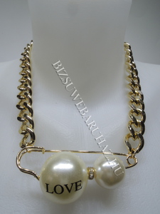 Antiallergén fémből készült,nagy láncszemes,tekla gyöngyökkle és ziherejsztűvel díszített,állítható méretű nyaklánc.