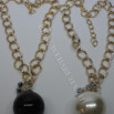Antiallergén fém bevonattal készült,óriás gyönggyel és üvegkövekkel díszített állítható méretű nyaklánc.