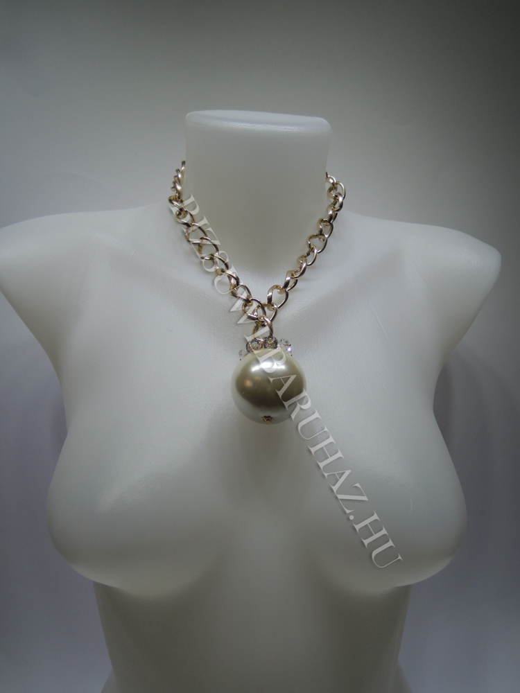 Antiallergén fém bevonattal készült,óriás tekla gyönggyel és üvegkövekkel díszített állítható méretű nyaklánc.
