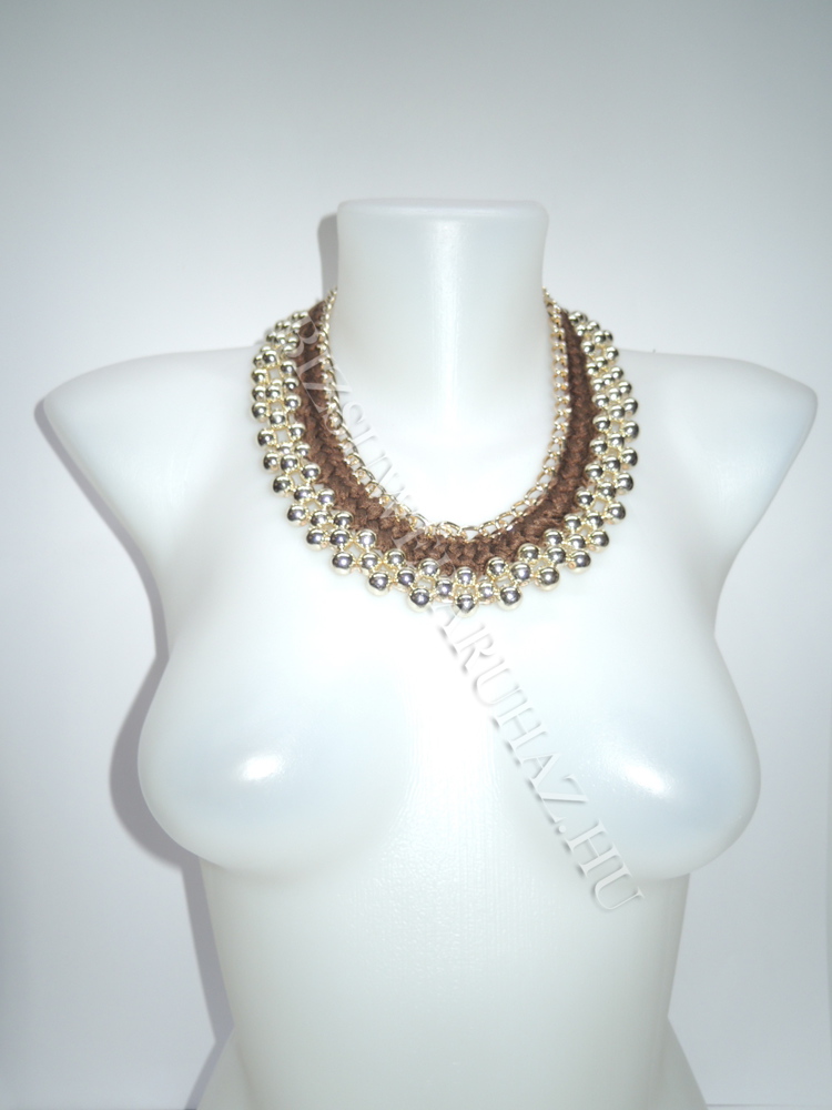Antiallergén fém bevonattal készült,fonott hatású,szélén damilra fűzött bogyókkal díszített állítható nyaklánc.