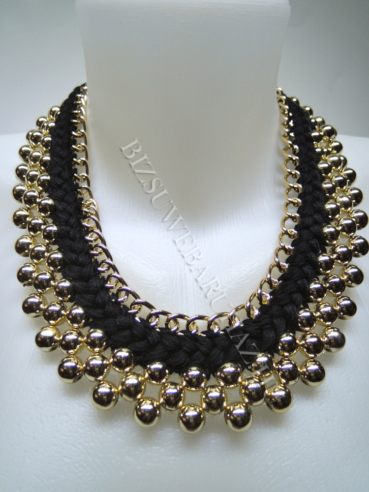 Antiallergén fém bevonattal készült,fonott hatású,szélén damilra fűzött bogyókkal díszített állítható nyaklánc.