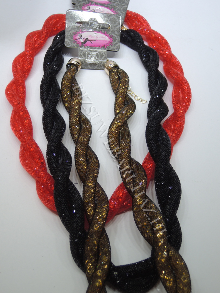 Műanyag hálóból és kristálykövekből készült csavart hatású állítható méretű nyaklánc.