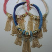 Zsinórból készült,nyaki részen kövekkel és fém elemekkel díszített,állítható méretű nyaklánc.