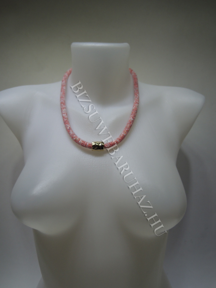 Műanyag hálóból és gyöngyökből készült állítható méretű nyaklánc.