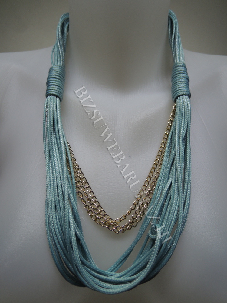 Zsinórból készült nyaki részen láncos díszítésű állítható méretű nyaklánc.