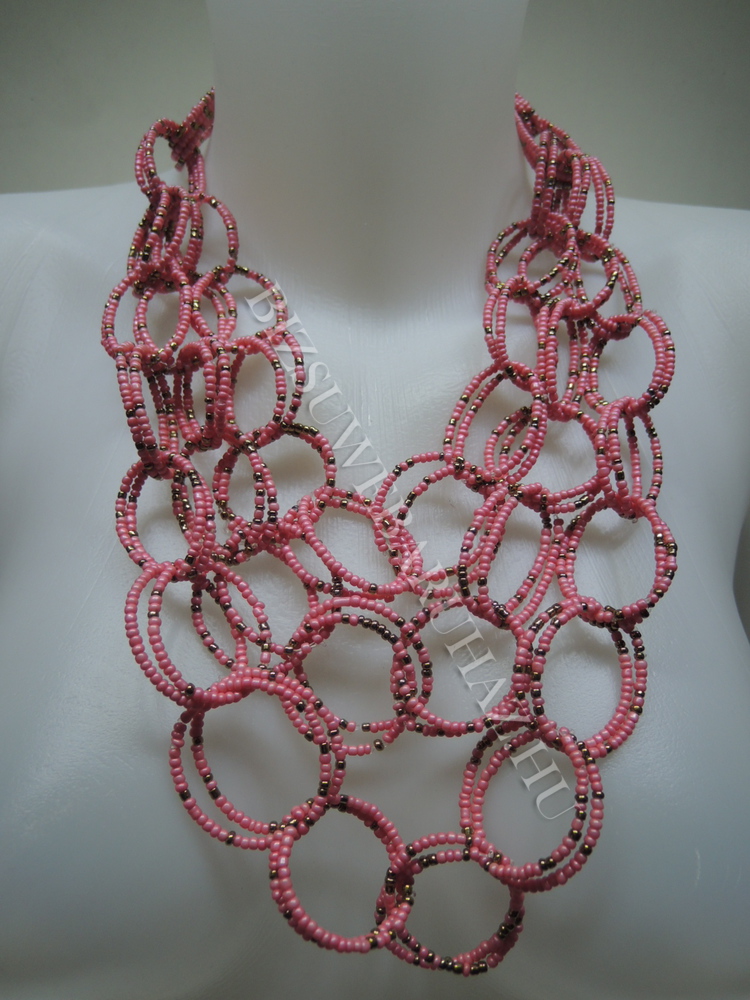 Damilra fűzött,kásagyöngyből készült,állítható méretű nyaklánc.