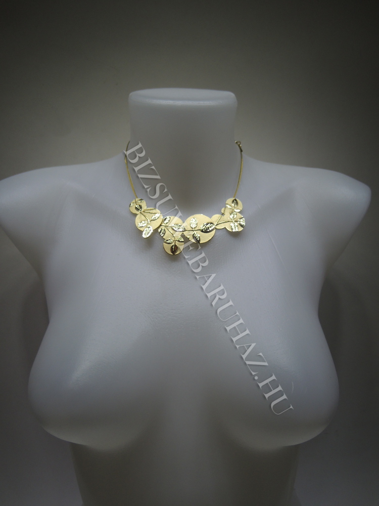 Vékony huzalból készült,nyaki részen levélmintás fém elemmel díszített,állítható méretű nyaklánc és fülbevaló szett.