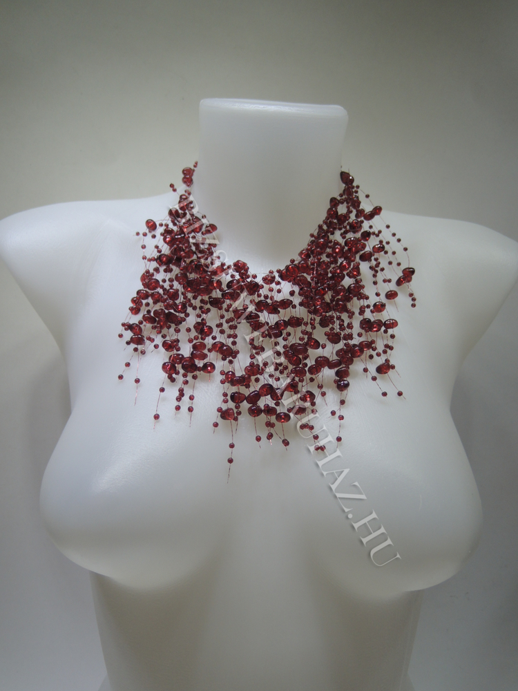 Műanyag gyöngyökből készült,zuhatag formájú állítható méretű nyaklánc.