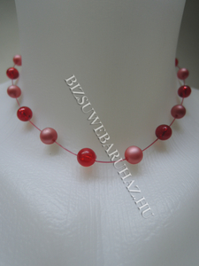 Damilra fűzött műanyag gyöngyökből álló,állítható kapcsos nyaklánc.