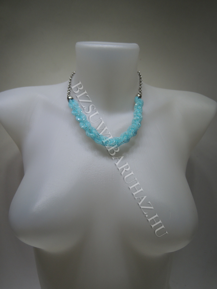 Műanyag hálóban kristálykövekkel töltött,nyaki részen fémből készült,csavart hatású állítható méretű kapcsos nyaklánc.