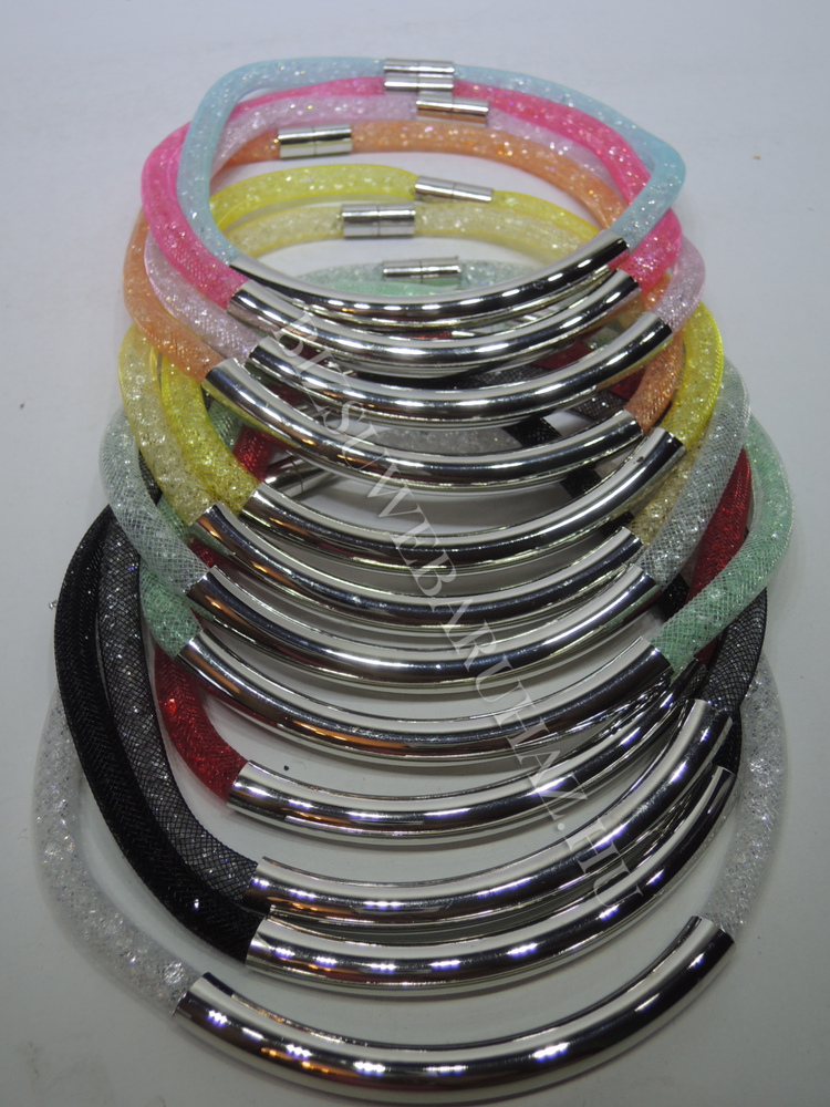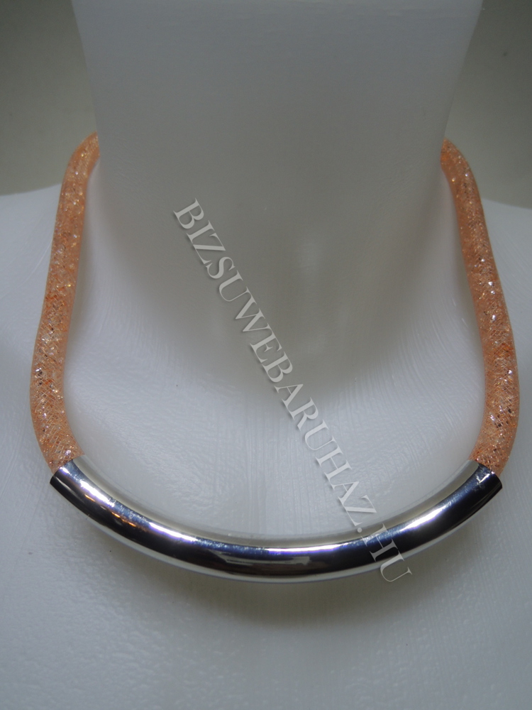 Műanyag hálóból és strasszkövekből készült,fém elemmel díszített mágneskapcsos nyaklánc.