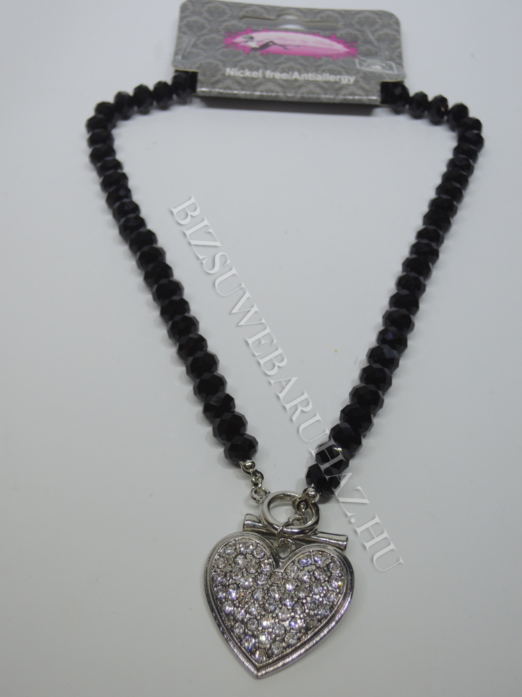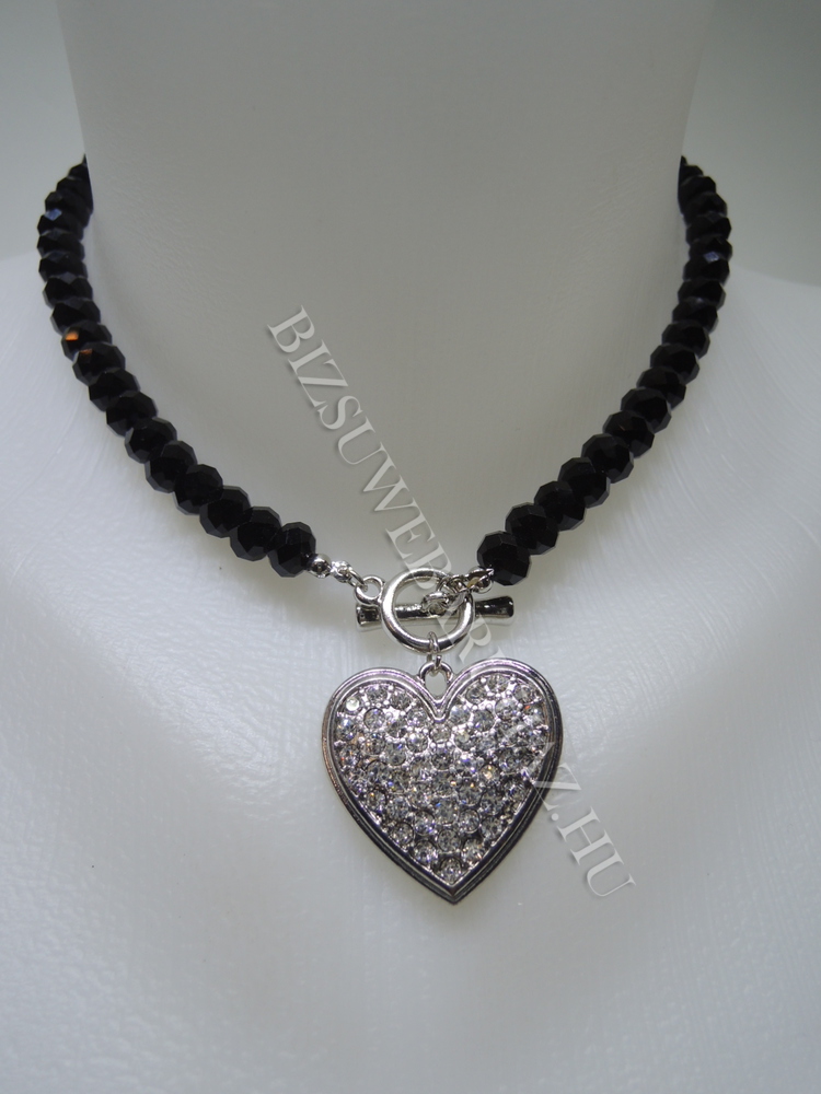 Csiszolt kövekből készült,strasszköves szív medállal díszített,elöl kapcsos nyaklánc.