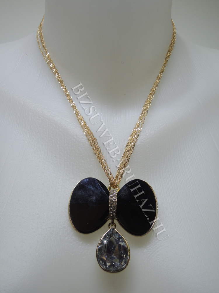 Antiallergén fém bevonattal készült,csiszolt és strasszkövekkel díszített masni medálos állítható méretű kapcsos nyaklánc.