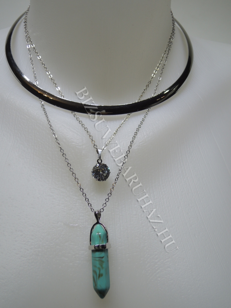 Antiallergén fém bevonattal készült merev,állítható méretű nyaklánc+2 soros fém nyaklánc,strasszkővel és műanyag kővel díszítve.