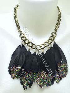 Antiallergén fém bevonattal készült,glitteres madártollakkal díszített,állítható méretű nyaklánc.