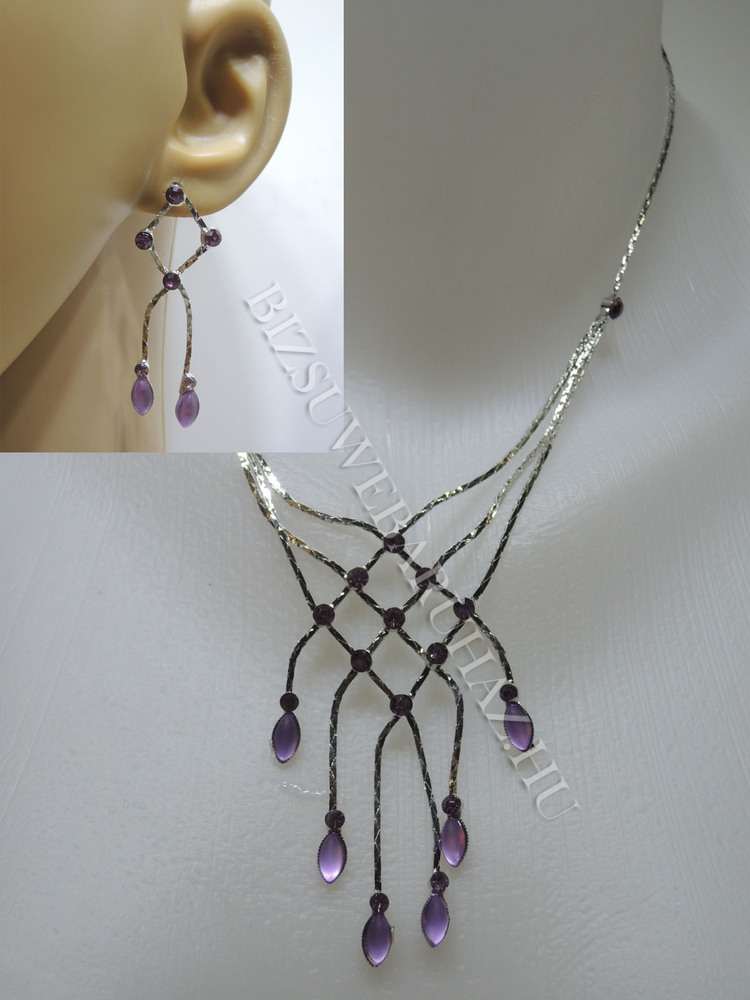 Antiallergén fém bevonattal készült,strasszköves díszítésű,állítható méretű nyaklánc és beszúrós fülbevaló szett.