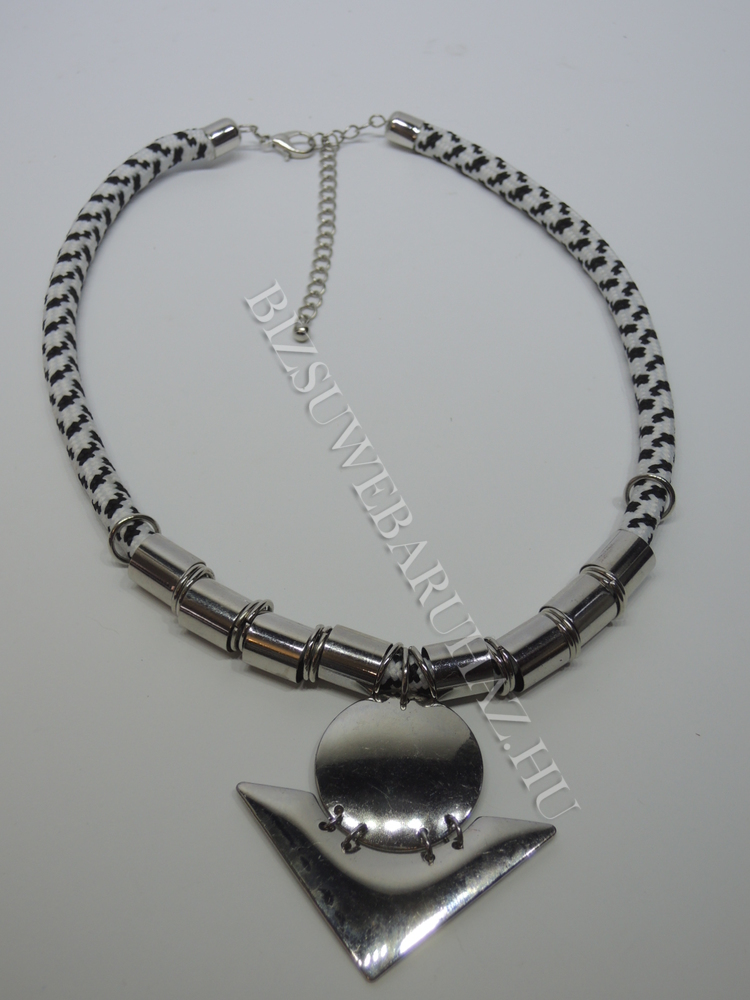 Zsinórból készült,fém elemekkel díszített állítható méretű nyaklánc.