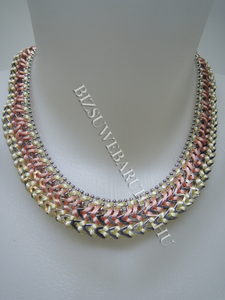 Antiallergén fém bevonattal készült,textil zsinórokkal átfűzött állítható méretű nyaklánc.
