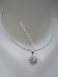 Antiallergén fém bevonattal készült.strasszköves kis virág formájú medállal díszített részben merev nyaklánc.