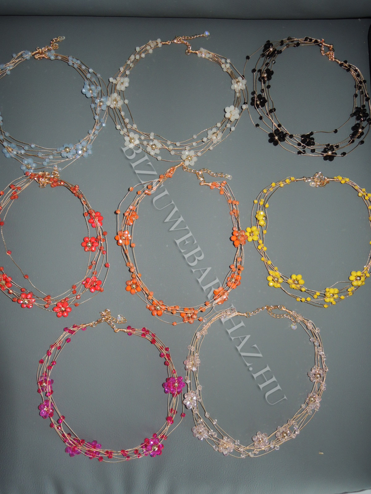 Csiszolt üveggyöngyökből készült,drótszálakra fűzött, állítható méretű nyaklánc