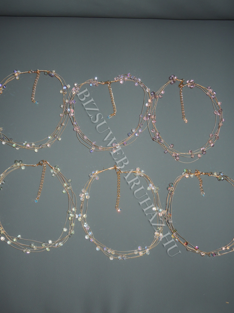 Csiszolt csepp formájú üveggyöngyökből készült,drótszálakra fűzött, állítható méretű nyaklánc
