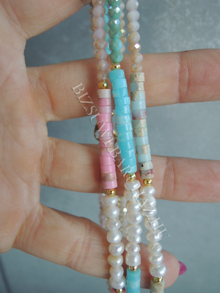 Műanyag-Kő-Kásagyöngy-Fa nyaklánc