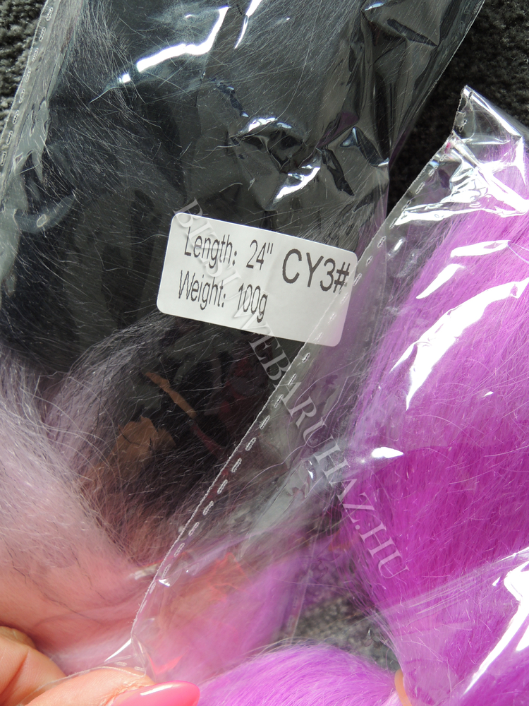 100 gr.os kanekalon,póthaj háromszínű:fekete rózsaszín lila