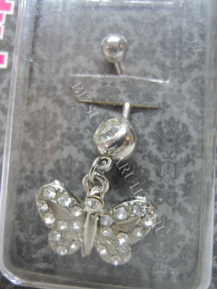 Antiallergén fém bevonattal készült,strasszköves pillangó formájú köldökpiercing.